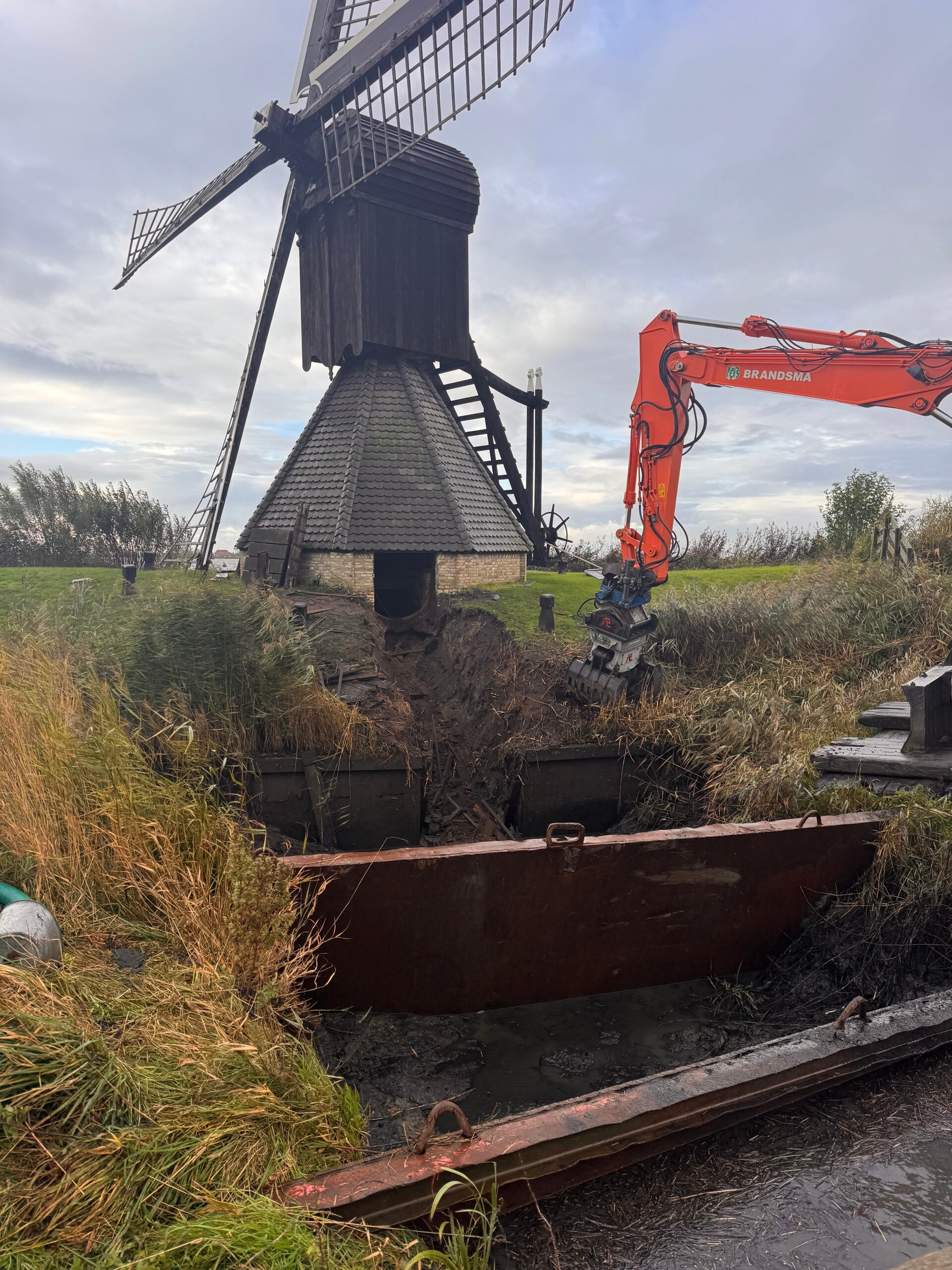 In de week van 20 oktober zijn de Molenbouwers begonnen met de werkzaamheden om de vijzelbak te plaatsen. Het is een gigantische klus, zoals de foto's ook laten zien. Desondanks respect voor dit prachtig ambachtelijke werk!